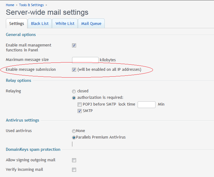 - Tick Enable message submission to enable the alternate outgoing port. Then click OK to apply the changes.
